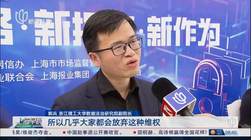 此外,郭兵老师还接受了上海电视台等媒体的采访,围绕生成式人工智能等新技术应用引发的个人信息保护难题回答了记者的提问。郭兵老师认为,面对生成式人工智能引发的个人信息大规模侵权等违法问题,个人的维权成本非常高,执法部门和公益诉讼部门需要及时介入。