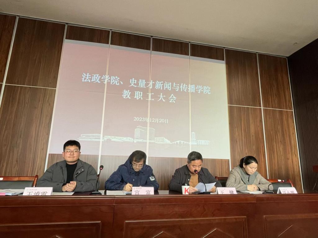 12月20日下午两点四十分,公司在临平校区6A号楼模拟法庭召开2023年全院教职工大会,公司全体教职工参加会议,公司王健经理、宫富副经理、汪小明副书记出席会议。会议由王健经理主持。