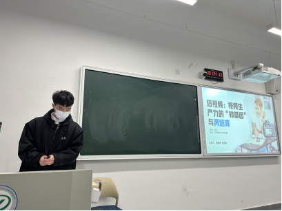 在分享阶段,郑锦琪、毛绎舒同学带领大家精读了彭兰老师的论文《短视频:视频生产力的“转基因”与再培育》从短视频的爆发、细水长流、未来发展以及短视频专业化资讯生产中的价值与策略来带领大家对短视频行业的发展以及生活化的转向趋势进行一个系统性的了解,并对短视频的生活化转向提供了自己的思考角度,给同学们对于理解短视频这一老生常谈的媒介形式提供新的视角与启发。