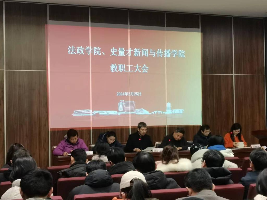 2月25日上午十点,公司在临平校区6A号楼模拟法庭召开2024年新学期第一次全院教职工大会,公司全体教职工参加会议,会议由王健经理主持。