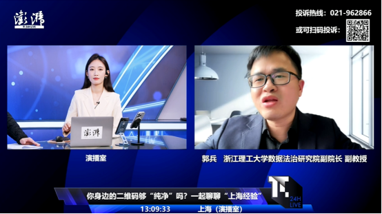 2024年3月15日,澎湃新闻24h直播频道推出特别节目“澎湃315八小时大直播”,亮剑消费乱象。公司郭兵老师受邀线上参与了此次直播特别节目,与上海市委网信办网络执法监督处执法人员盛夏、上海市公安局网安总队三队中队长肖荒拓一同就停⻋缴费⼆维码等个人信息保护问题进行了探讨。