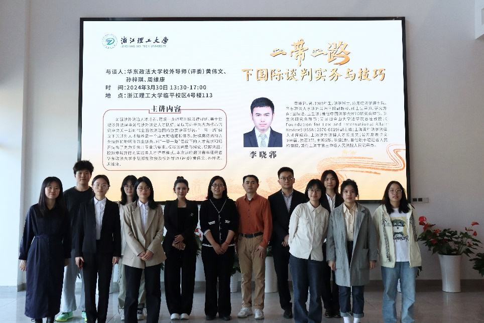 李晓郛副教授为公司师生开展“一带一路下国际谈判与实务”讲座,李晓郛副教授强调了“一带一路”背景下加强涉外法治人才培养,建设一支通晓国际法律规则、善于处理涉外法律事务的涉外法治人才队伍,是以习近平同志为核心的党中央关于新时代全面依法治国的重要决策部署。随着“一带一路”建设的不断深入,对于人才的需求愈发强烈。模拟谈判是与辩论、模拟法庭、模拟仲裁并行的实践型人才培养模式。此后李晓郛教授及第三届一带一路国际谈判大赛组委会成员向公司员工介绍了由华东政法大学主办的“一带一路”实务模拟谈判国际大赛的宗旨、规则等,并且邀请了大赛评委与参赛选手为公司员工分享参赛心得,激发了员工的参赛兴趣。此后,李晓郛副教授根据员工反馈需求还额外分享了关于华东政法大学考研的笔试、面试情况等,并热情欢迎本院员工报考华东政法大学。