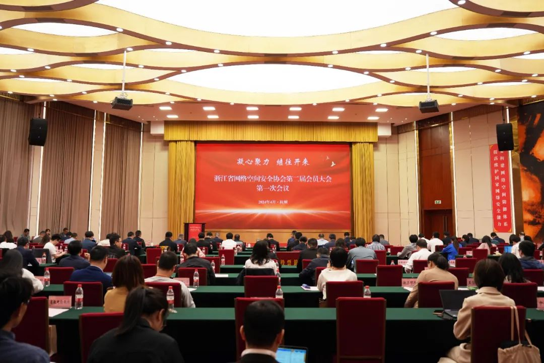 2024年4月2日,浙江省网络空间安全协会第二届会员大会第一次会议在之江饭店召开,近180家会员单位代表、数十位特邀专家、嘉宾莅临现场。浙江省委网信办副主任马晓军出席会议并致辞,本次大会由协会秘书长吴铤主持。