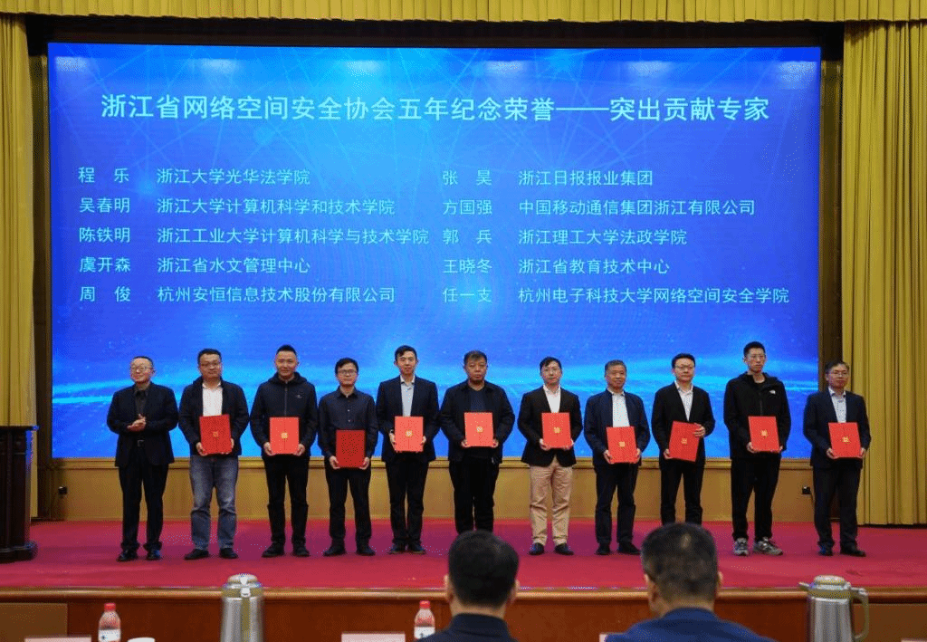 会议表彰了浙江省网络空间安全协会2023年度网络安全发展成果暨五年纪念荣誉获奖单位和个人,公司郭兵被评为浙江省网络空间安全协会五周年纪念荣誉“突出贡献专家”。近年来,郭兵老师积极参与省网络空间安全协会相关工作,筹建并担任协会个人信息保护专业委员会副主任,参与组织了多场个人信息保护相关研讨活动,所撰写的多篇对策建议被协会《之江网安智库》采纳并报送相关主管部门。