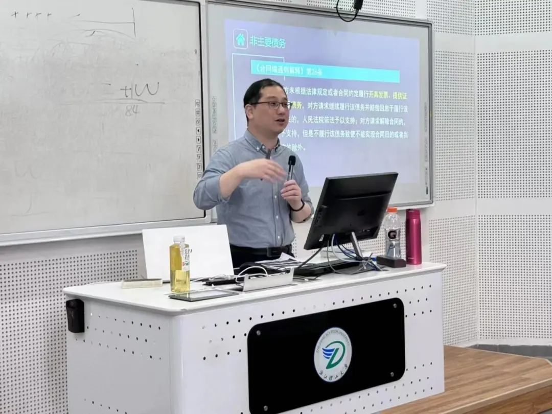 K1体育法政公司、史量才新闻与传播公司倪龙燕老师对本次学术讲座的主题内容进行了介绍并对李教授的到来表示热烈欢迎。李建星教授就《合同通则司法解释》的重点法条进行了讲解。对于合同的履行部分,重点讲述了非主要债务、以物抵债、利益第三人合同的三种类型。如以物抵债部分,李教授以“工抵房”为模型,分析了新债与旧债之间的关系。合同保全部分,分别就代位权、撤销权的构成要件、法律后果进行逐一分析,详尽的阐述了该解释下的留白。此外,李教授对合同的变更、终止、违约责任等诸多条款进行了深入浅出的讲述,并以大量的案例阐述不同的法条解释下可能存在的问题。