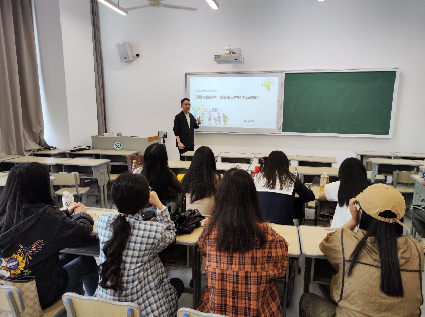 2023年4月16日下午,社会工作邀请浙江省七彩阳光公益基金会理事、秘书长刘欢,为同学们带来题为《理解社会创新:社会变迁中的创新思维》的专题讲座。