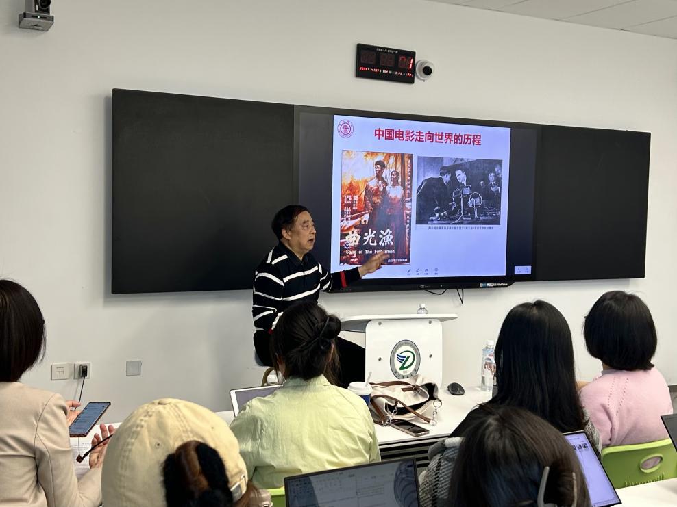 讲座伊始,李老师回顾了“中国电影走向世界的历程”,他列举了几个重要事件,其中《渔光曲》作为中国电影史上的一部经典之作,其影响力不仅限于国内,还走向了世界。电影以其深刻的主题和感人的故事情节打动了观众,让人们看到了中国电影的独特魅力;周总理邀请安东尼奥尼来华拍纪录片,则是中国电影与国际电影界交流的重要事件,这次交流为中国电影走向世界提供了一个窗口,让世界看到了中国社会的多样性和复杂性,为中国电影的国际化发展奠定了基础;1987年《红高粱》亮相国际影坛,这部电影以其独特的叙事风格、浓郁的民族风情和深刻的人性探讨,赢得了国际观众和评委的高度认可,可以说是中国电影走向世界的巅峰之作。李老师通过总结中国电影在国际舞台上的不断崛起和成长,展示了中国电影的艺术魅力和社会责任感。