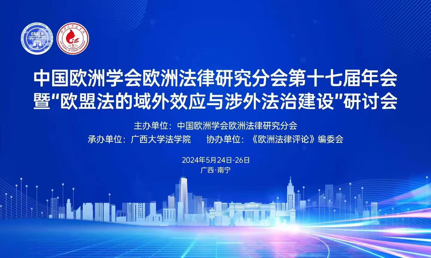 中国欧洲学会欧洲法律研究会于2024年5月24日至26日(周六、周日)在广西南宁召开第十七届学术年会,本次年会由广西大学法公司承办。5月24日晚举行理事换届会议,5月25日进行了全天学术研讨,26日上午举办“欧洲法研究生论坛”。