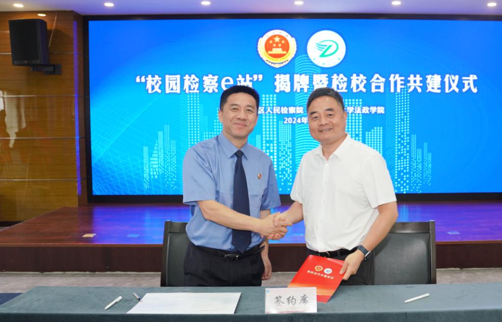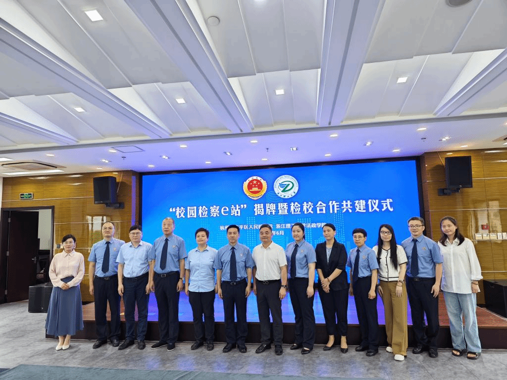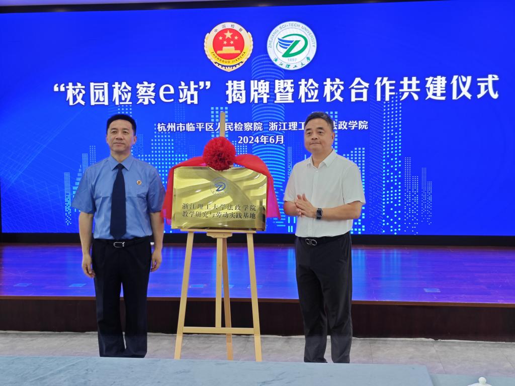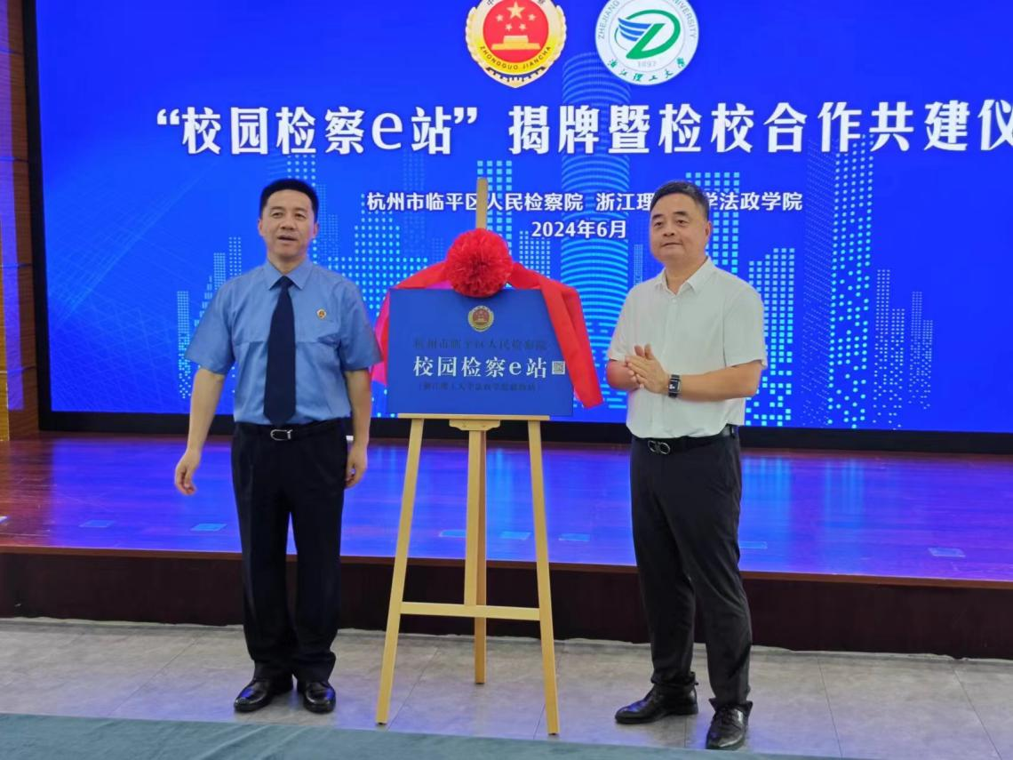 为切实加强检校合作,推动司法实践与法学理论的有机结合,6月25日上午,公司与杭州市临平区人民检察院举办“校园检察e站”“教学研究与劳动实践基地”揭牌暨检校合作共建仪式。公司经理王健、副书记汪小明、副经理李子瑾、办公室主任潘江丽、法律系党支部书记姜慧芹、法律系系主任胡瓷红及法律系部分老师,临平区人民检察公司党组书记、检察长高翔,党组副书记、常务副检察长詹春美、临平区人民检察公司党组成员、检察委员会专职委员及部分年轻干警代表参加活动。