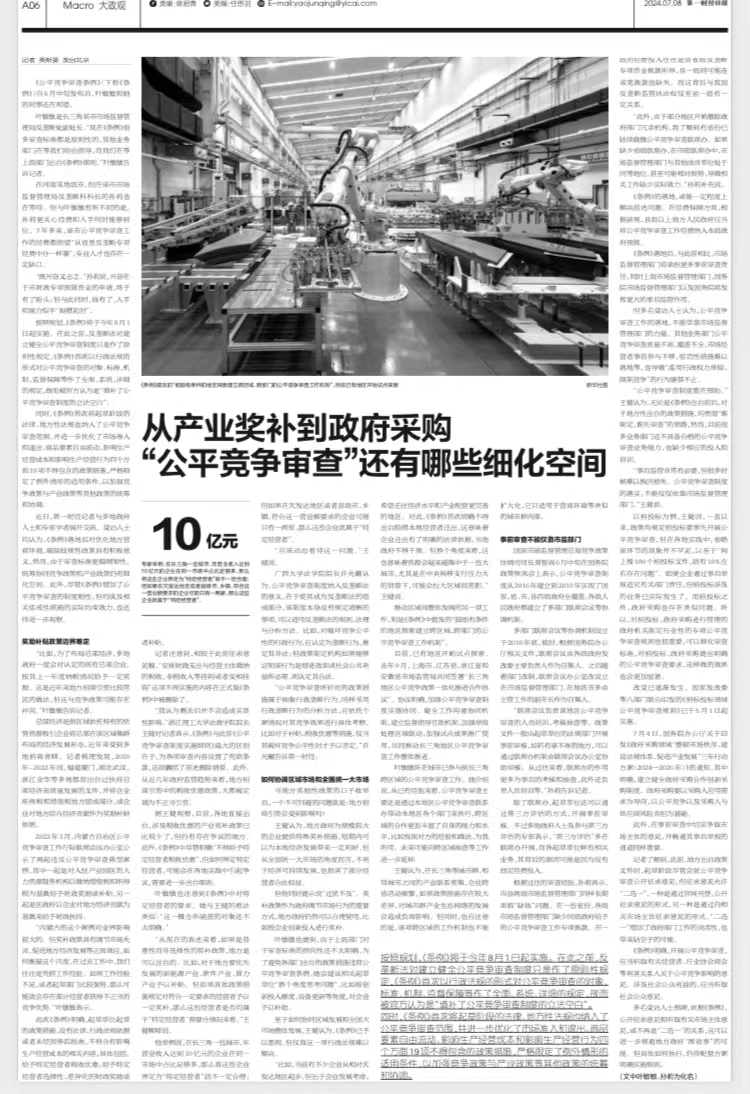 近日,公司王健经理分别接受南方都市报、第一财经采访,阐述了《公平竞争审查条例》出台的意义、背景以及亮点;同时,也指出了现行公平竞争审查工作仍需完善之处。