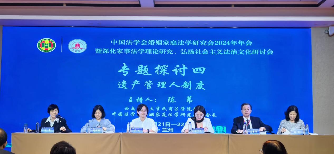 2024年9月21日至22日,由中国法学会婚姻家庭法学研究会主办、兰州财经大学法公司承办的“中国法学会婚姻家庭法学研究会2024年年会暨深化家事法学理论研究、弘扬社会主义法治文化研讨会”在兰州海鸿假日酒店举办。来自高校、法院、检察院、律师事务所等单位的150多位理论与实务工作者参加了此次年会。公司法律系刘宇娇老师应邀参加会议,在会上进行了题为“我国遗产管理人制度在家事程序法中的定位与实现路径”的发言,并与与会学者进行了交流。
