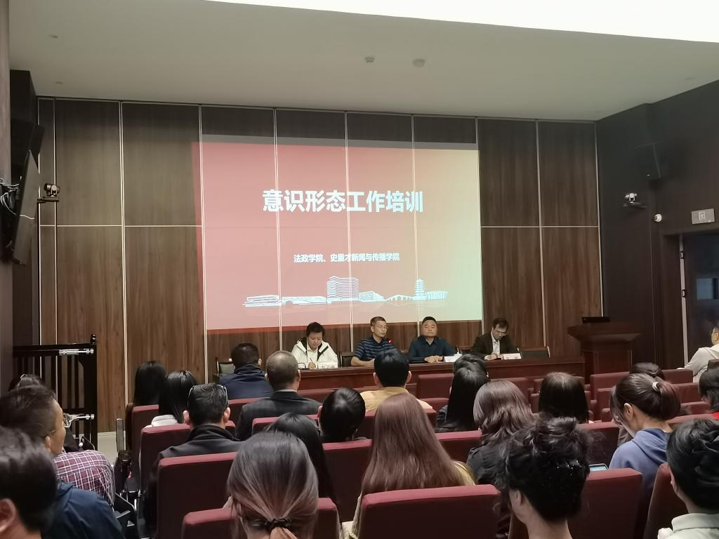 近日,法政公司、史量才新闻与传播公司在临平校区行政楼107会议室召开了公司意识形态工作培训会。公司党委书记谭立章主持会议。公司全体教职工参加培训。