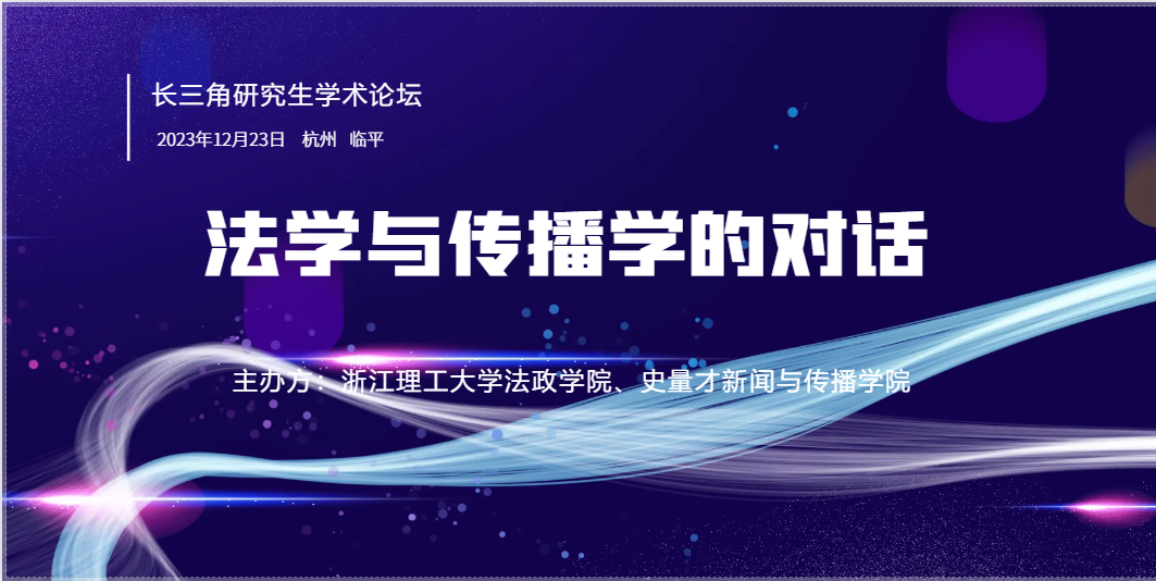 2023年12月23日,首届法学传播学青年论坛暨法学与传播学跨学科前沿论坛在杭州景悦雷迪森维嘉酒店召开。论坛以“法学与传播学的对话”为主题,邀请全国各地硕博研究生,一同研讨“高质量发展与法学、传播学研究的新进展”、“全球传播法学的新进展与再审视”、“传播法学视野下的国家与社会”、“文明碰撞与东西语境下的传播法学流史”、“传播法学与国际关系的新视点”、“宏观视域下的传播法学发展”、“传播法学研究的新方法与新论题”等话题。