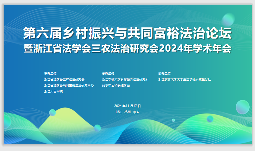 11月17日,第六届乡村振兴与共同富裕法治论坛暨浙江省法学会三农法治研究会2024年学术年会在杭州市临安区举行。来自南开大学、山东大学、西北农林科技大学、浙江农林大学、K1体育、嘉兴大学、温州大学、绍兴文理公司等省内外院校的专家学者、法官、检察官、各市县法学会代表等参加会议。