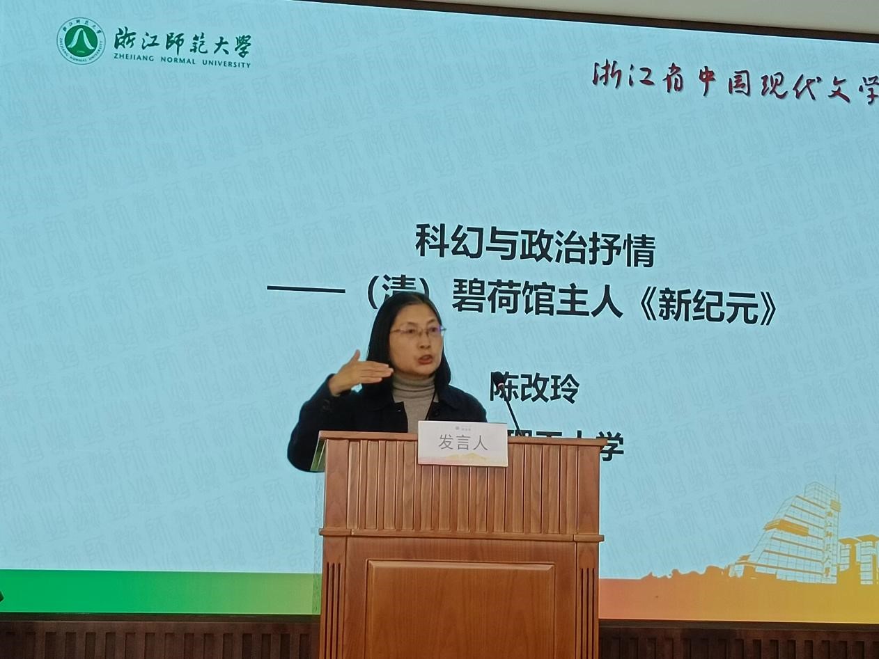 会议分大会主旨发言和研究生论坛举行。在23日上午的大会主旨发言中,公司退休教师、浙江省现代文学学会副会长、原史量才新闻与传播公司经理陈改玲教授作了题为“科幻与政治抒情——(清)碧荷馆主人《新纪元》”的报告。