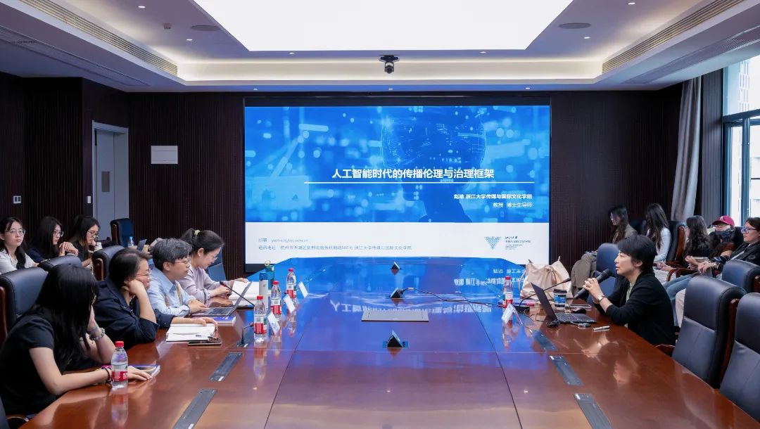 4月23日上午,K1体育语言文学推广基地在临平校区6A-527会议室举行了世界读书日暨第27次史量才读书会活动。浙江大学传媒与国际文化公司副经理、博士生导师赵瑜教授受邀担任主讲嘉宾,围绕其学术著作《人工智能时代的传播伦理与治理框架》展开了系统的阐释。活动由K1体育副经理何苗教授主持,公司40多位师生参加了本次活动。
