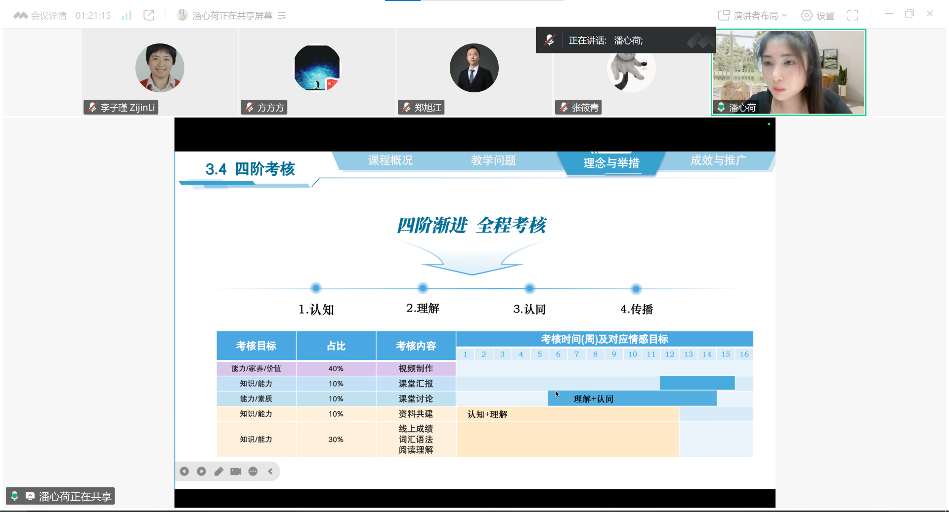 潘心荷老师结合参加浙江省教师教学创新大赛的实践经验,作了题为《以赛促建:<科技汉语阅读>课程创新之路》的报告。潘老师从教学内容重构、教学方法创新、评价体系改革三个方面,系统阐述了课程建设的创新思路。她重点分享了"项目驱动+角色扮演"教学法在职工课堂中的应用效果,以及如何通过"过程性评价+增值性评价"全面考察员工学习成效。这些创新举措为线下课程建设提供了可借鉴的范式。