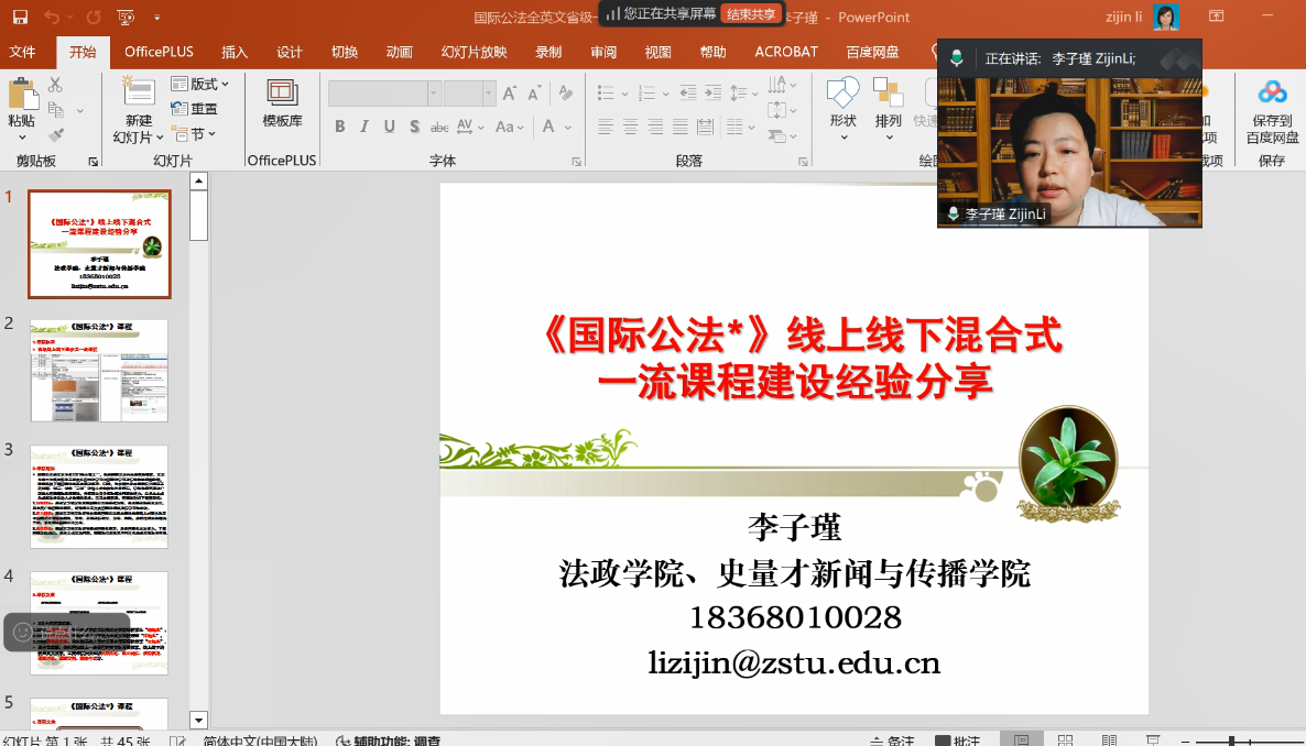 李子瑾老师以《涉外法治人才培养背景下混合式课程的迭代升级》为题,分享了《国际公法(全英文)》课程的最新建设成果。她重点介绍了课程团队如何基于前期建设基础,通过优化线上资源结构、创新线下研讨模式、完善多元评价体系等举措,进一步提升课程的"两性一度"。李老师特别展示了课程新开发的"模拟国际法庭"模块,引发了与会教师的热烈讨论。