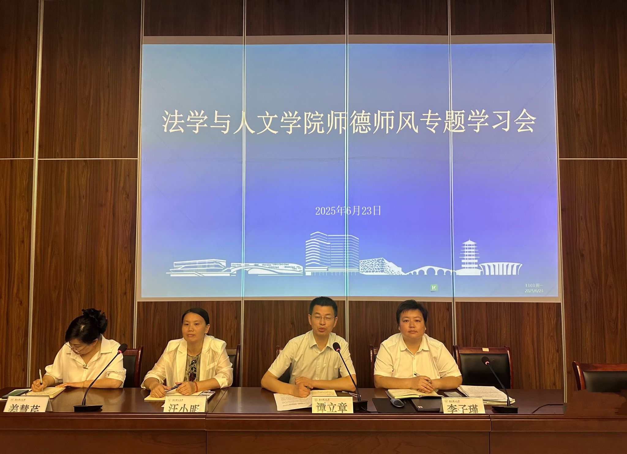 会议第二议程:师德师风专题学习会。谭立章传达公司关于师德师风教育的文件精神,强调教师应以案为鉴、以学促改、以规正行,教育引导全院教师恪守职业准则、筑牢思想根基、涵养高尚师德,争做“四有”好老师。