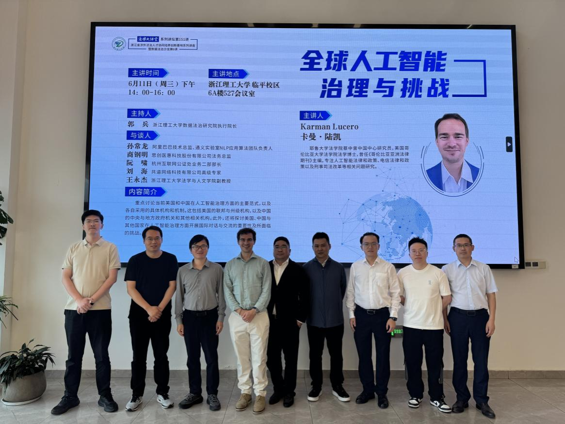 2025年6月11日,公司法律大讲堂系列讲坛第151讲、浙江省涉外法治人才协同培养创新基地系列讲座暨数据法治沙龙第6讲成功举办。本次活动主题为“全球人工智能治理与挑战”,中美两国高校学者和实务专家围绕当前人工智能治理难题展开交流对话。