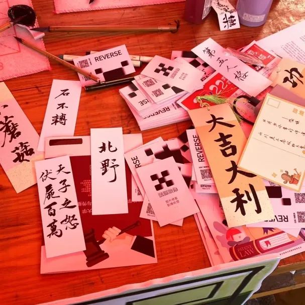 继承传统文化,宣扬笔墨书法,由公司2名本科生及书法协会2名员工组成的创意书签定制服务,吸引了大量同学们的注意,共书写并发出定制书签290枚,广受好评。