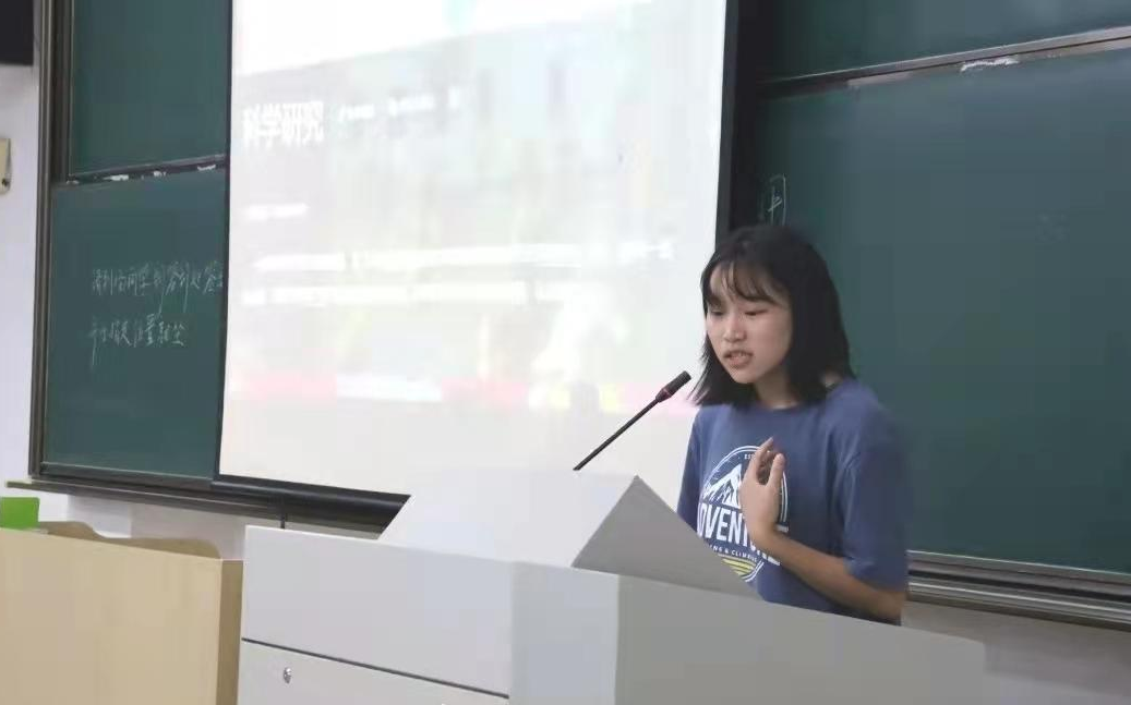 宣讲伊始,团委科研部副部长梁靖宜和高莹向新生介绍了“挑战杯”、“浙江省科技创新活动暨新苗人才计划”等科研赛事;还强调了科研竞赛的重要性以及做科研满满的好处,如加综测分,二课分以及获得相关奖励等。