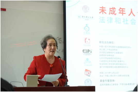 2019年12月22日,“未成年人保护伦理、法律和社会问题研讨会”在中国人民大学人文楼召开,会议由公司和中国人民大学伦理学与道德建设研究中心、北京爱它动物保护公益基金会、首都爱护动物协会、山东大学动物保护研究中心、行动亚洲生命关怀能力发展中心、华中科技老员工命伦理学研究中心、厦门大学医公司生命伦理学研究中心联合举办。近五十位与会嘉宾来自立法界、法学界、伦理学界、教育学界、动保界和其他社会各界,包括全国人大代表、未成年人代表和家长代表。