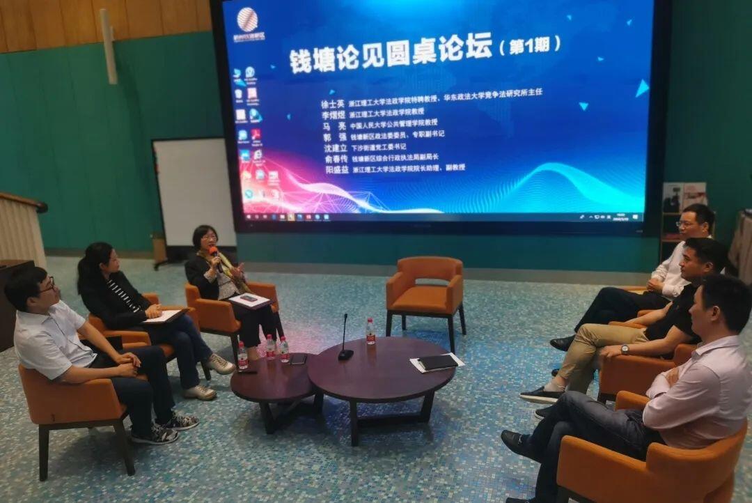 在继三场学术专题讲座后,5月30日下午开启了“第一期钱塘论见圆桌论坛”,参与论坛的6位嘉宾分别是K1体育法政公司特聘教授、华东政法大学竞争法研究所主任徐士英,K1体育法政公司教授、印度治理研究中心主任李熠煜,中国人民大学公共管理公司教授马亮,新区委政法委委员、专职副书记郭强,下沙街道党工委书记沈建立,新区综合行政执法局副局长俞春传。论坛由K1体育法政公司阳盛益副教授主持,新区党群工作部(组织部)副部长戎婷蓉最后做总结发言。