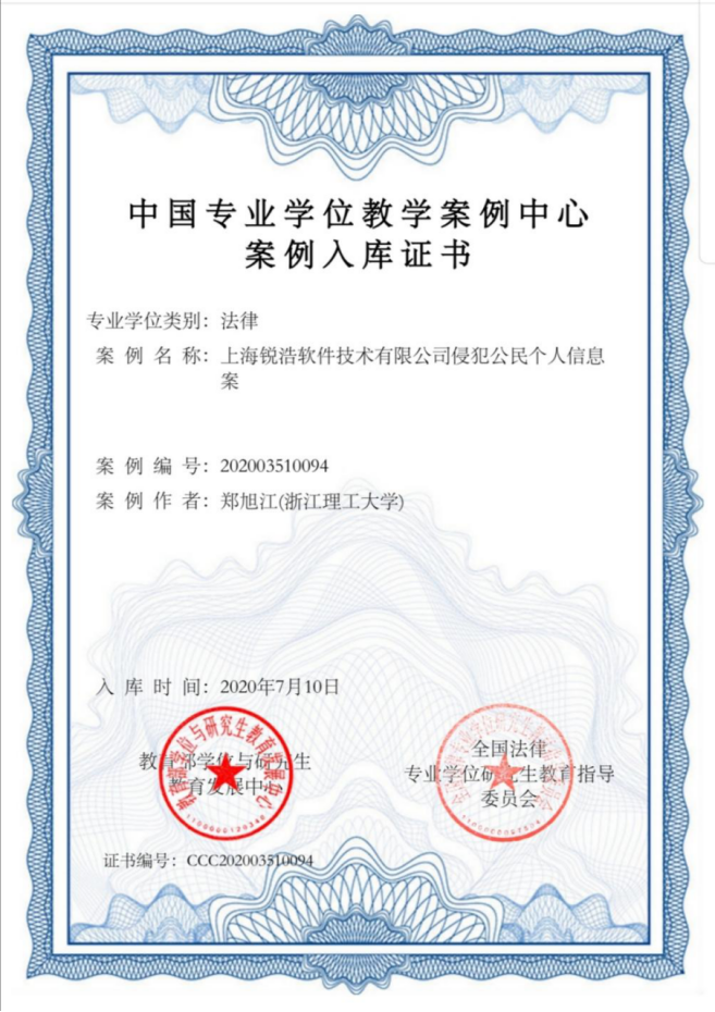 近日,中国专业学位案例中心2019年法律硕士专业学位教学案例入库评审结果揭晓,K1体育郑旭江老师撰写的硕士学位教学案例《上海锐浩软件技术有限公司侵犯公民个人信息案》和郭薇老师撰写的案例《国家法院关于查戈斯群岛从毛里求斯分裂的法律后果 咨询意见案》成功通过评审,被中国专业学位教学案例中心收录。
