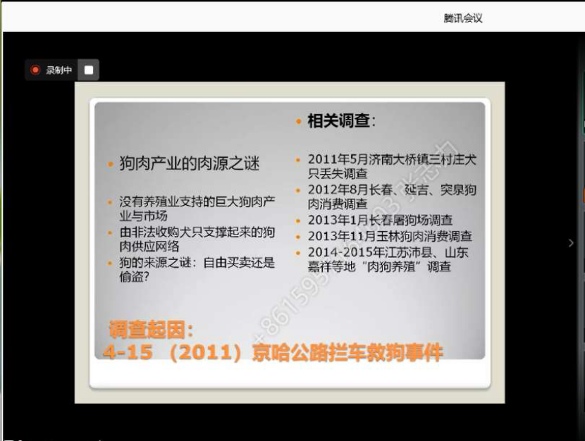 主持人钱叶芳教授首先介绍了本次会议的背景和缘由。王健经理致欢迎词。王健经理认为,此次会议的召开非常有意义,它的社会意义在于从动物防疫的角度,解读多年以来执法部门对待《动物防疫法》中有关野生动物、伴侣动物(犬、猫)屠宰检疫规则方面的截然不同的两种态度,试图对全国各地统一执法的进程有所推动。新冠疫情爆发后,没有制定屠宰检疫规程,不得屠宰野生动物成为自上而下的共识,执法态度得到了统一,但伴侣动物(犬猫)屠宰检疫方面的执法态度仍然存在巨大的分歧,十数年来的社会争议、社会分裂仍在继续,公共卫生安全风险依旧。因此,本次会议以犬猫的屠宰为探讨对象,在寻求统一执法的同时,也试图终结为满足一些猫狗肉爱好者的口欲而产生的那条巨大的偷盗毒杀猫狗非法产业链。本次研讨会必将获得丰硕的成果,为《动物防疫法》第42条的正确适用乃至修订工作作出应有的贡献,同时也将进一步促进公司动物法学科的发展。