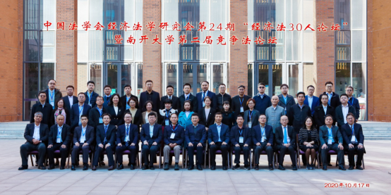 20201017日,由中国法学会经济法学研究会主办,南开大学法公司、南开大学竞争法中心承办的中国法学会经济法学研究会第24“经济法30人论坛在天津成功举办。来自全国经济法学界的50余位专家学者现场参加了会议。