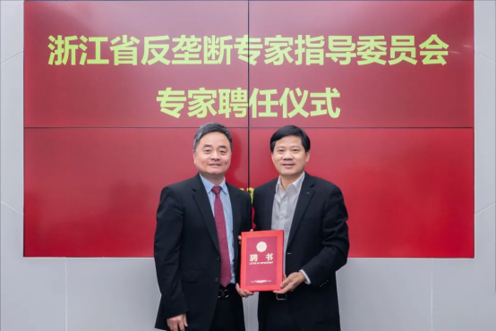 王健教授受聘为浙江省反垄断专家指导委员会专家