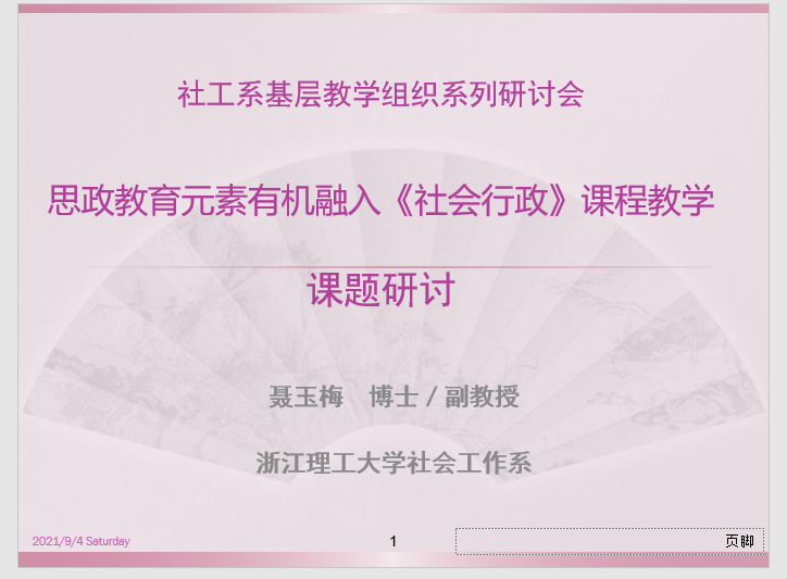 2021年9月3日上午,法政公司、史量才新闻与传播公司社会工作系结合系支部党建活动,在25号楼1201会议室召开本学期基层教学组织系列研讨会第一讲。本次研讨会由首批省级课程思政教学研究项目负责人聂玉梅副教授主讲,社会工作系全体教师都积极参加了本次教学研讨。