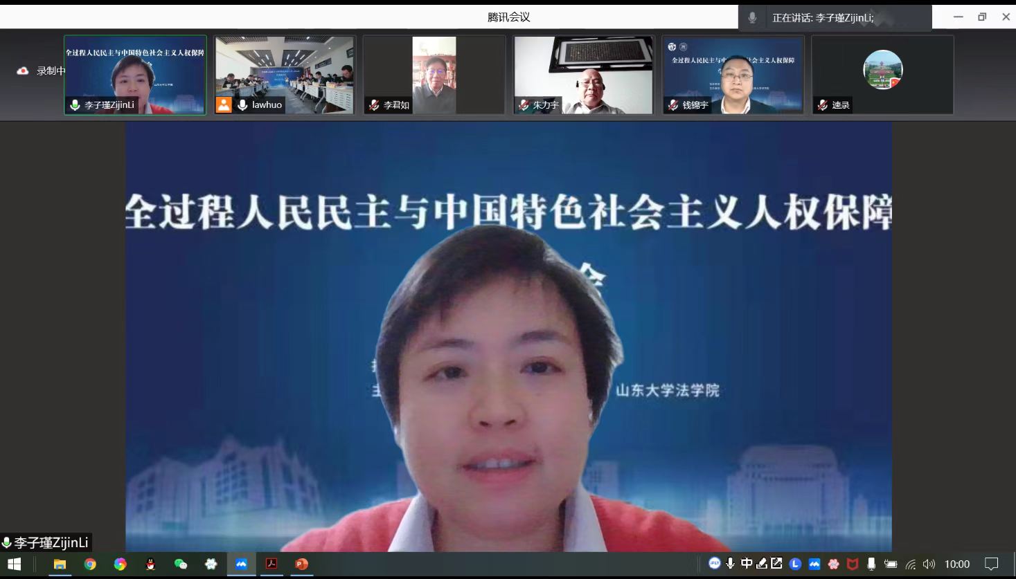 12月10日,由中国人权研究会指导,山东大学人权研究中心、山东大学法公司主办的“全过程人民民主与中国特色社会主义人权保障”学术研讨会在青岛召开。来自国内多所高校和研究机构的专家学者以在线方式参加了本次研讨会。公司李子瑾副经理应邀参会并发言。